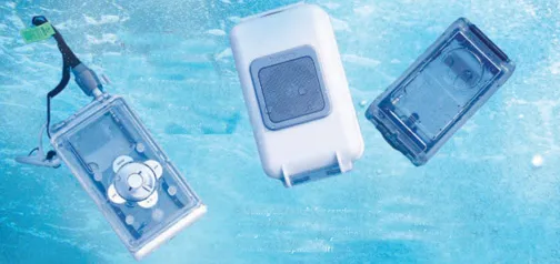 By coupling H20s waterproof headphones with one of their cases, you can listen to your digital music player down to 10 feet below the surface. PS tried the headphones in a freshwater pool. Underwater, the sound isn’t very good unless you take the time to attach the ear plugs that come with them, and then its OK.