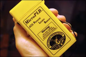 The little brother of the 406 EPIRB system is referred to as a personal locator beacon, or PLB. It includes a GPS chip and all of the attendant broadcast functions, including the 121.5-MHz homing signal. One of the key differences is that PLB spec calls for a 24-hour signal lifespan while the conventional EPIRB must deliver a 48-hour transmission under the same temperature and battery age constraints.