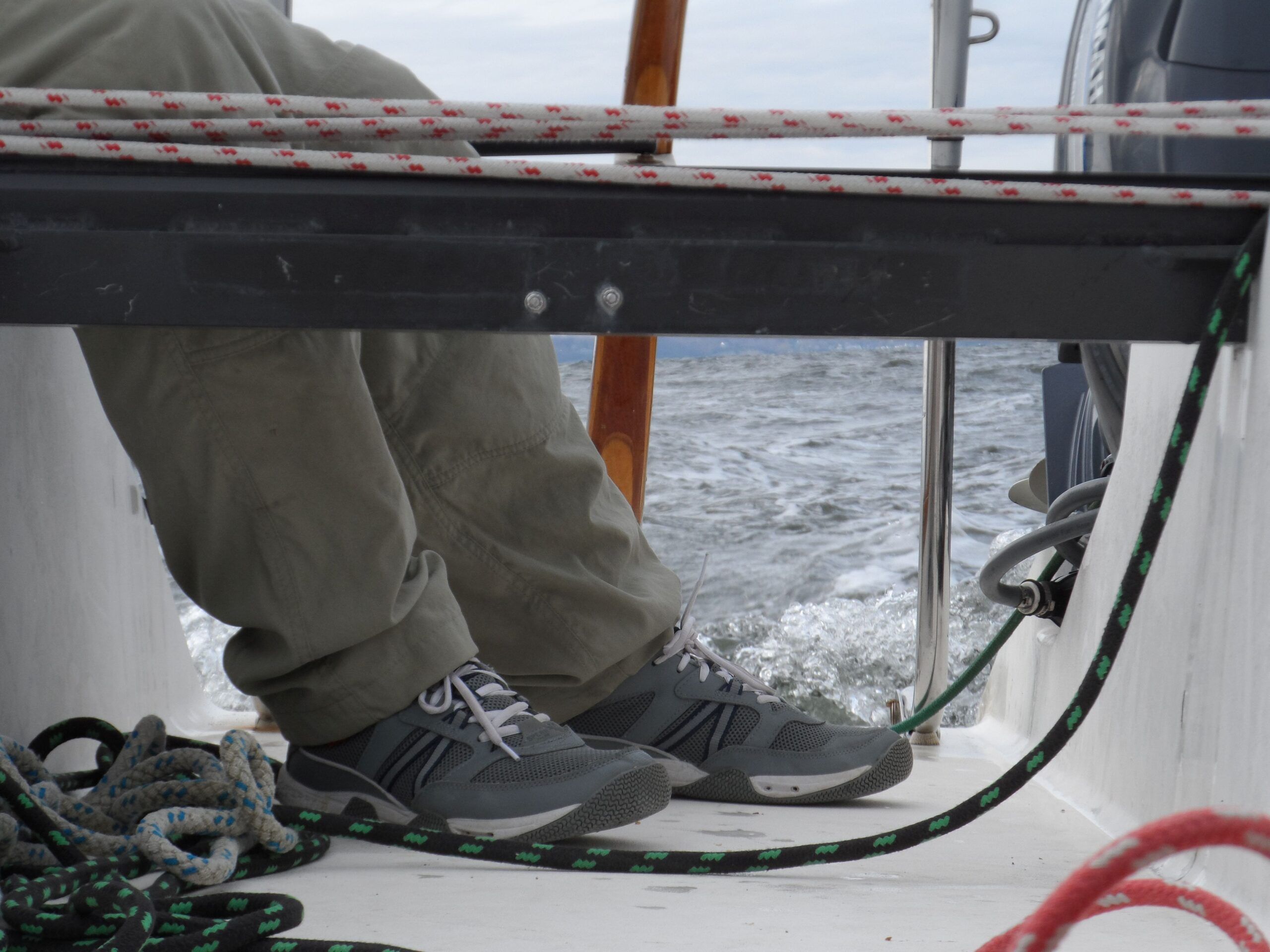 Waterproof Socks. We dislike clunky deck boots unless it’s pouring or we’re really wading. Otherwise, we stick with the agility of deck shoes, adding waterproof socks when the air temperature drops into the 60s. We first tried them in the 80s. They were non-stretch and murder to pull on and didn’t last. These days, for really cold weather, we like. For real cold we like Gill boot socks, which come up to the knees and go well inside boots.. Also available in regular and mid-calf height, these socks are generally more comfortable with deck shoes. We’ve worn waterproof socks from Randy Sun ($34) when it’s a little warmer. Both are warm enough and leak proof enough we can step in 40-degree F water getting out of the dinghy and not feel it. Who needs boots? They don’t breathe as well as regular socks, so your feet will get a little clammy if it’s over 60-degrees F. They’re also slow to dry, so we put them on the boot drier with shoes and gloves.