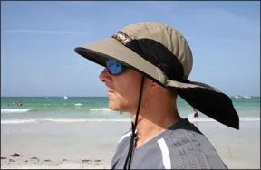 Similar in style to the Tilley hat, the polyester Cov-Ver Supplex Boaters Hat features an exterior water-repellent coating and a long strip of airflow mesh around its crown that provides limited ventilation. The hat has foam padding and a hidden stash pocket in its crown. It also has a nylon neck flap that velcros in the front to keep it in place. Testers noted that the flap provided great protection for the neck, but it did not fully cover the wearers ears. The oblong-shaped brim was stiff enough to handle light breezes without flopping. The Cov-Ver safari hat is available in four sizes (21 to 24 inches). Cov-Ver sells its hats wholesale, but you can find them online (www.killerhats.com) and at boat shows or chandleries.