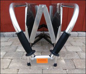 Now for the specialty hand trucks. The Roleez Sports Caddy (http://www.wheeleez.com/)has an epoxy powder-coated steel tubular frame with telescoping handle and fold-down platform. The platform is not aluminum plate, but is mild steel, a disadvantage in our opinion. Its not as wide as the above three hand trucks, but plenty wide enough to balance a cooler or battery. What makes this truck unusual is its large inflatable polyurethane balloon wheels, which are superior to skinny wheels/tires on beach sand or snow. These doughboy wheels measure nearly 12 inches in diameter and 7 inches wide. Literature boasts theyll also cruise over “rocks, curbs, stairs, and bumps; over grass, and on other environmentally sensitive areas,” whatever those are. And they do. We tried the Sports Caddy on a variety of terrain, including beach sand.