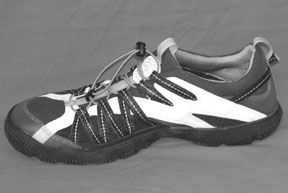 It’s true, boating shoes look less and less conventional these days, and Timberland’s Plunge Water Shoes certainly fit that description. This shoe is essentially a nylon mesh upper glued and stitched to a non-marking rubber sole. The ankle and the sole both have foam padding for comfort. The upper is reinforced by woven nylon and synthetic leather straps that are sewn into the sole. The nylon straps form the eyelets for the “laces,” which are actually one continuous bungy cinched by a spring-loaded clip. There’s also a small plastic clip to help tuck away the unused portion of the laces, which is nice. Except for its reinforced areas, the mesh upper is all one piece, including the tongue.