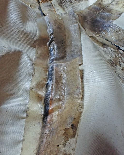 If you damage the garment’s inside membrane, and your tape repair doesn’t cover that area, you have a few possible options. One is a new aftermarket coating. We’ve begun testing a few flexible coatings for spot waterproofing. For example, we used MDR Amazon Inflatable Boat Coating on a few areas of the inside of the kayak spray skirt. So far it has stopped all leaks.