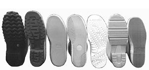 Next, traction. How well does the sole grip? For this test, we used a traction board coated with two abrasion grades of non-skid compound (heavy and light). We also tested the boots on a slick gelcoat deck hosed down to increase slipperiness. Although all boots passed our traction-board test, only one type of sole scored well on the slick surface—the suction-cup design on the Hevea Pacific and Musto M1.
