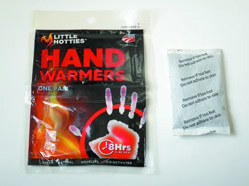 HotHands Hand Warmers. About $0.70/pair if you buy a box.