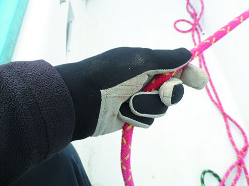 2. Freezer gloves are good for handling docklines, but get soaked easily and don’t block the wind.