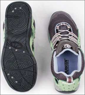 The Columbia Outpost Hybrid performs like a no-nonsense athletic shoe, but looks stylish and feminine. Its speed-lacing system uses a cinch cord and toggle. The Outposts wide-gauge, breathable mesh body with water-resistant overlays allowed the shoes to drain quickly in tests; they retained no water after a few minutes of squishing about. The removable insoles are thinner than the other shoes, but a tighter fit inside the shoe keeps them from sliding around. The shoes snug fit makes them a good candidate for sailors with narrow feet.