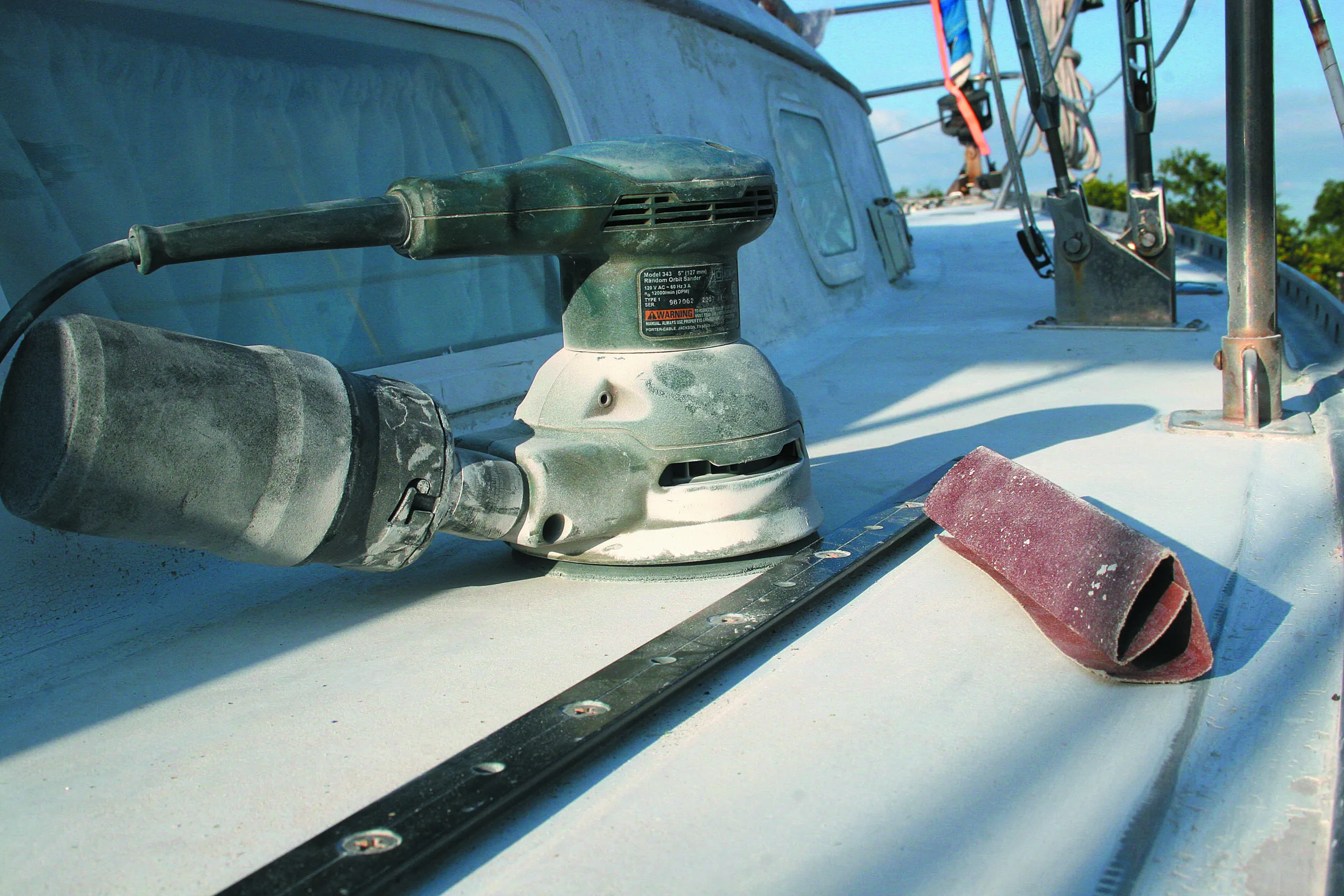 Granted, removing paint and primer from a 30-foot boat is a big project to begin with, but not—so I thought— too complex. However, I soon found myself diving into the PS archives for help. My decision to keep the hardware in place complicated matters, but nearly all of the questions I had were answered by past reports, although a couple relevant reports, like our comprehensive sandpaper test, dated back to our black-and-white days.