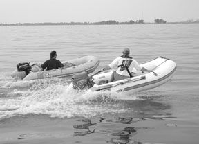 Our thanks to Stephan Lance of Defender Industries, Waterford, CT, for loaning us the Mercury boats, as well as for good advice on inflatables in general. Thanks also to Bob Kurmin of Sarasota’s West Marine for the use of his RU-310 and loaning us the Mercury 5 outboard.
