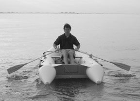 Oar storage is not good, in our opinion. The oars can pop out of their aft keepers if the helmsman sits on them, and they can be dislodged by water sweeping up in a hard turn. Rowing, however, is very good.
