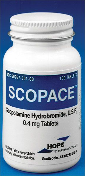 The oral form of scopolamine, Scopolamine Hydrobromide, marketed as Scopace, has the same active ingredient as the patch, so its potential side effects, interactions, and complications are the same. However, in the pill form, the dosage can be modified to better suit the individual.