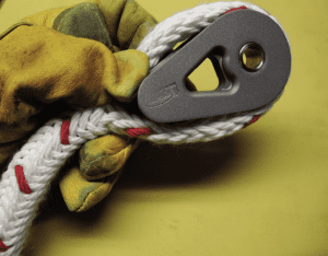 3. Purpose-designed thimbles made of anodized aluminum, machined billet aluminum, and stainless steel have holes sized to match the clevis pin diameters commonly used in rigging. Any of these would be a good choice for fashioning your own emergency rigging. At the other end, you could put a tensioning low-friction block like the one made by Colligo.