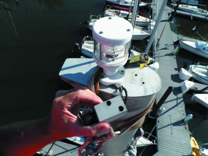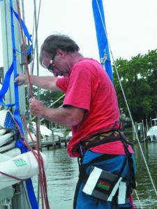 At least once each season, someone should make the trip up top to inspect the rigging. There can also be more immediate needs. An eagle could eat your wind instruments— as happened to me—or the masthead light burns out, and there is always the aggravating lost halyard. You can be winched up in a bosun’s chair, climb a halyard using ascenders, or climb a mast ladder (fixed or webbing). All of these require two sturdy lines that go clear to the masthead—one to support the ascent and the other as a safety line. Search PS archives for “Going Aloft” and you will find several articles on the topic (PS August 2019 “Years Later, Mast Mate Still Riding High,” PS October 2014, “Getting to the Top”), as well as a review of bosun’s chairs “Practical Sailor Tests Bosun’s Chairs and Harnesses,” PS June 2010.