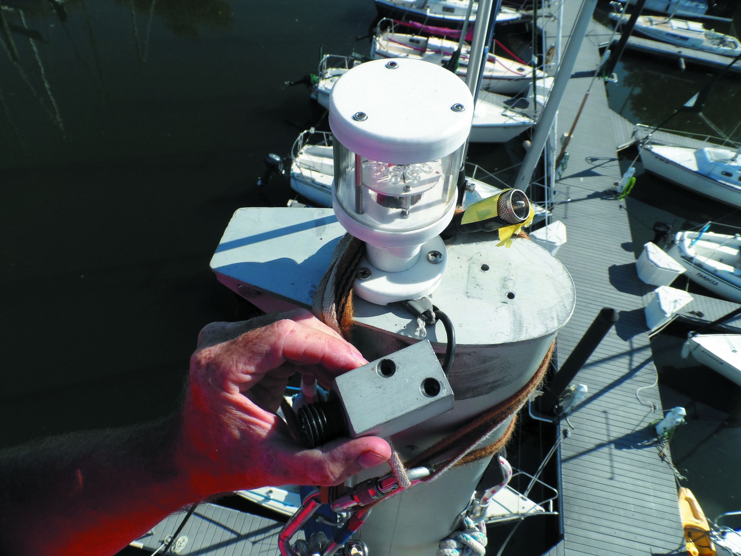 A prusik can also be used for positioning at a mid-point of the mast, where it adds useful bracing, particularly if the boat is rolling due to waves or boat wakes.