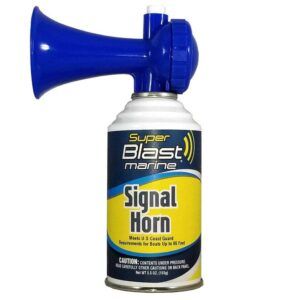 The law requires most boats to carry audible and visual distress signals. The most ear-ringing sound signal I know is the old-fashioned, environmentally incorrect Falcon compressed-gas horn, though some compressed-air horns are said to be equally noisy. You want the loudest warning horn close at hand in a dense fog or when you’re backing out of a slip into traffic. The main problem with horns is that we neglect them until they’re needed. They’re often left out to rust in the cockpit, and we never have enough backup canisters.