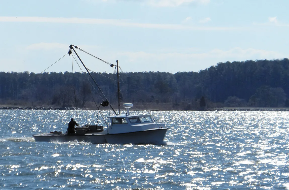 Oyster dredges like this boat can move erratically when working small bars. The required day shape is not always displayed.