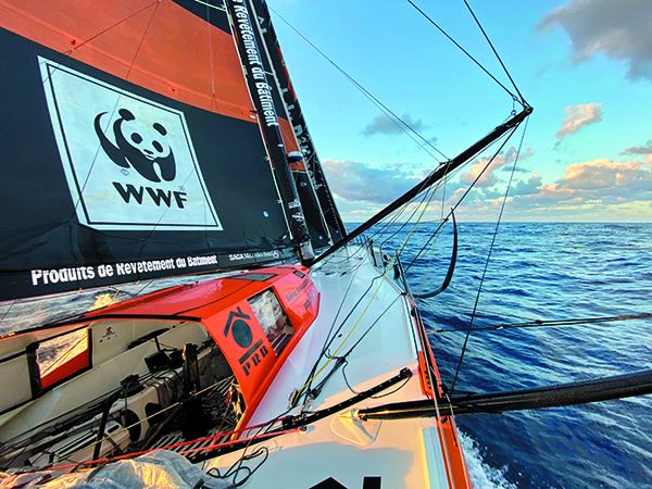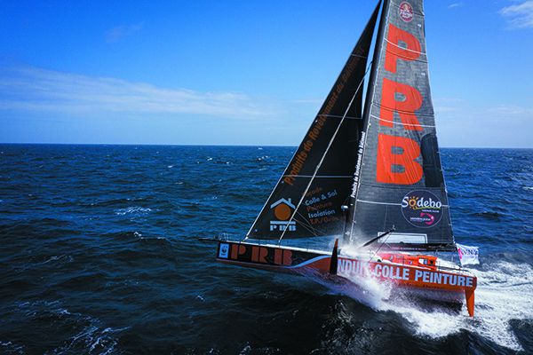 Skipper Kevin Escoffier was prepared, and ocean tested for the challenges of a non-stop, solo, round-the-world, Vendée Globe Race. But the seagoing, 40-year-old, rugby player had no idea how valuable his fitness and agility would prove to be. For three weeks he had been pushing PRB and acclimating to the massive, 300m² ( upwind) and 600m² (downwind) sail plans.
