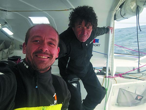 I had a bit of trouble sleeping during the night, I had been eating a bit and drinking the water I had on board. Close to the morning I heard a sail flapping so I got out, had my head out of the life raft and I saw it wasn’t dark anymore because of the moon, even with no sun we were able to see very well and I saw Jean just above me, at 100/200 metres from me, I asked him ‘Now, we’re doing it now?” and he said ‘Yes yes let’s do it now.’