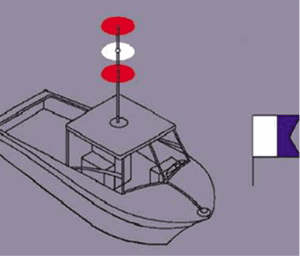 Florida gets specific regarding divers. Not only are lights required at night, but a flag must be displayed. Interestingly, the specified flag differs from the international flag, which is the blue and white “Alpha” signal flag. According to Section 327.331 of Florida code: