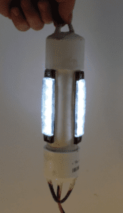 Our DIY RAM light is based on the DIY anchor light modules but substituting red LEDs for white. They are weather proof, vibration resistant, meet the Coast Guard requirement for 3 mile visibility, and because the lights have a 120-degree vertical arc of visibility, full visibility is maintained even as a boat rolls heavily. The red version is slightly less bright than the white version, though it still meets the standard. You could, of course, mount four LED strips to make the red version brighter; there is enough room.