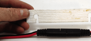 10. Note that although all 2-pin plugs appear identical, there is a distinct male and female. The male plug has the ground (black) exposed, so that accidental contact with a grounded surface, like a mast or engine, does not cause a short. Each light module must contain either a female plug (anchor light only) or one of each (RAM modules), so they can be chained together. Mark each module with an up arrow, or you will be frustrated when you plug in the wrong end and it doesn’t light.