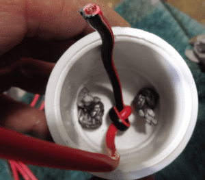 11. Seal the Dyneema line and the pigtail into the bottom cap, inside and out.