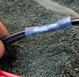 9. Twist the leads together and crimp to the pigtails (Photo 3). Be sure to strip enough insulation to allow for several twists. LEDs are polarity sensitive, so connect black-to-black (Photo 4). Seal the union with adhesive-lined heat shrink. Good fittings will have enough adhesive to fill the gaps between the three leads. The three leads, twisted together, should be about 14-16 AWG. RAM modules should have double-plug leads, one through the top and one through the bottom, so that they can be chained together.