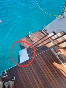 Two of the gentlemen guests from the charter were waiting for me at the transom. One of them happened to be a gastroenterologist. With very little help from me, they were able to get me back aboard. Various guests were dispatched to grab towels and anything else that could absorb blood. Realizing that something had happened but not fully grasping the severity, the chef emerged from his cabin. By this time I was seated at the aft cockpit table and had resumed my role as captain. As much as I tried to leave my role as victim, my badly injured arm wouldn’t let me. I did my best to assure the guests that while this wasn’t normal it was under control, even though it wasn’t….. yet.