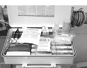 I can recommend Adventure Medical Kits’ Comprehensive Aquatic Kit without reservation. It’s compact yet amazingly comprehensive for its size. Dr. Weiss’ A Comprehensive Guide to Wilderness and Travel Medicine is a gem. I doubt that you could buy the contents of this kit and an equivalent container for less than $129.95- better simply to buy this kit, study its contents, then stow it in an accessible place and hope you won’t have to use it too often.