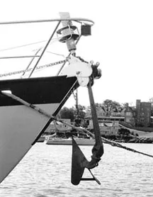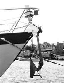 Our oversized ground tackle, including anchor, chain, windlass, and stemhead fitting, paid for itself in half an hour. Most stemhead fittings and rollers would have been ripped off by the sideways strain we applied in wrenching our boat around.