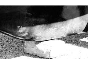 A careful examination of the keel and the keel-hulljoint showed no evidence of anything other than cosmetic damage. With an iron keel, however, it’s important to properly repair even cosmetic damage as soon as possible after an accident. Copper bottompaint on adjacent, undamaged areas of the keel canrapidly cause pitting on unprotected areas of iron. Anexternal lead keel gives you a lot more latitude inthis case.