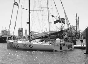 The traditional image of the singlehanded round-the-world racer is that of a wild-haired mad Frenchman with no concept of his mortality, surviving on a diet of cigarettes and red wine. The reality is far different. Yes, the archetype still exists, but Americans are working their way up the ladder in this type of racing, as are women. In fact, you hear as many North American and English accents among the Around Alone skippers as you do continental European. American, Canadian, Bermudian, English, and New Zealand flags are all seen on the sterns of Around Alone racers.