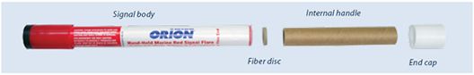The report also prompted the flare maker, Orion Safety Products (www.orionsignals.com), to investigate the incident. After recreating the malfunction in a controlled laboratory setting, Orion determined that the defective signal was likely missing a fiber disc barrier at the lower end of the flare composition column. (See illustration Above.)