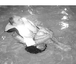 One benefit of a good PFD is that it floats you higher in the water; another is that it allows you to minimize body motions. Still another is that it permits you to assume the so-called HELP (Heat Escape Lessening Posture) position with your knees drawn up to your chest and your arms wrapped around your knees or trunk.