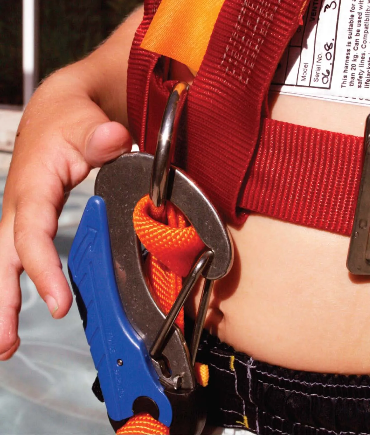 We tested the Crewsaver harness in various situations one would expect to encounter on a boat or onshore, checking it for comfort and fit on children ranging from 35 to 50 pounds. Two children were subjected to a series of pool tests, including lifting and dropping and dragging in the water-a perfect exercise for a hot summer day. We did not do a break test on the tether, but identical tethers have withstood our dynamic load tests of 1,000-plus pounds.