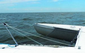When working forward, we either wore a tether or learned to be careful, but there is little reason to be near the rail on the bow of a multihull, and they don’t heel more than 10 degrees. However, I did learn about hidden corrosion of coated stainless cable when a cable bridle securing the reacher tack let go with a startling “bang.”