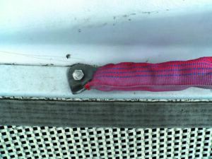 The most common cause of failure has always been chafe through the stanchion holes, accelerated by burrs. Some of these burrs are artifacts of manufacture, but most are the result of wires rubbing on the holes over time, often made much worse by rail meat hanging from bare steel lifelines. Smoothing these burrs and providing chafe protection are vital to a safe fiber lifeline installation. To smooth these burrs, use a Dremel tool, a rat-tail file, or an improvised cylindrical hand sanding device (sandpaper wrapped around a bolt will work). Sand down to 400 grit, and then polish.