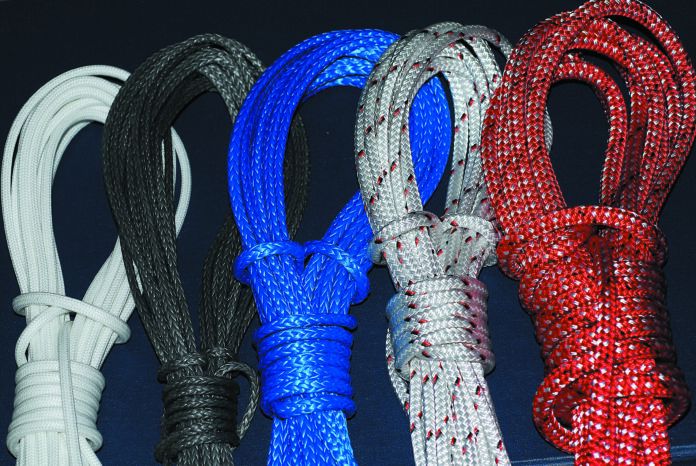 We’ve been focused on Amsteel, because it is a popular choice and because most user experience is with Amsteel and close relatives (12-plait ultra-high molecular weight polyethylene, UHMWPE). But there are also specialty coreand- cover lifeline products, where the cover is woven specifically to resist chafe. The upside is that chafe resistance in covered rope is 5-10 times better than 12-plait.
