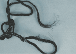 • UV Damage. A requirement for a flag that faded in a predictable manner would be nice. About one year of full-time exposure to the sun is known to weaken webbing about 25%, a fair basis for retirement. • Abrasion. With machine stitching, any appreciable general abrasion, wear around carabiners, or broken stitches at the ends of the splice are cause for retirement. Scratched carabiners, on the other hand, are usually fine, although any cracks or other signs of crevice corrosion in the hardware is cause for concern. • Corrosion. Any stiffness in the gate can prevent proper closing. A brief soak (1-3 hours) in vinegar or diluted CLR (better) may free up stiffness due to superficial corrosion or lime deposits. Lubricate with waterproof grease or spray corrosion inhibitor and place them back in service. If longer soaking is required, retire it. Corrosion in key structural areas of the carabiner are also important; any corrosion or separation of the anodized coating in the nose area or around any of the gate pins is grounds for retirement. • Overload flag. Obviously, a tether should be retired when its overload flag has been exposed, even partially. But you don’t throw have to throw them away. The old tethers are still good for a variety of uses. Cut the slings off and put them to use in less critical areas like securing fishing rods while trolling, or as deluxe dinghy or kayak painters. The webbing can turn into reefing and sails ties, or sewn into any number of interesting projects. Waste not.