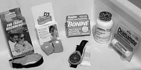 Of the wristband products, ReliefBand by far is the most expensive at nearly $45. This battery-powered unit is also the most “high-tech” in appearance, design and action. (A second ReliefBand, called the Adventurer, sells for $150. It has replaceable 3V watch batteries, a leather strap, storage case, and claims to be water- and shock-resistant.) The other bands, which are similar in appearance and design, fit the wrist snugly and make use of a plastic button that is to be placed at the correct acupressure point. They sell for about $10. All three products are to be worn on the wrist, either continuously or whenever motion sickness symptoms strike.