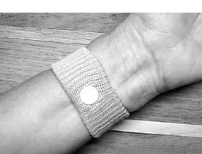 This product uses an acupressure technique to help reduce nausea and other motion sickness symptoms. Sea-Band provides two non-adjustable elastic bands: Both must be worn—one on each wrist—for it to be effective. According to the product literature, the knob on the band is to be placed on the P6 Neiguan (or Nei-Kuan) point on each wrist, which is easily located using the enclosed diagram. The point is effectively three finger widths from the first wrist crease.
