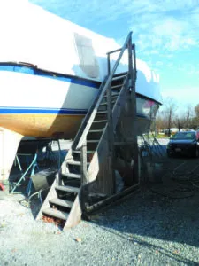 5. Stairs are much safer than ladders when a lot of heavy or bulky materials will be transferred aboard. Some yards have rolling stairs which can serve the same purpose when properly blocked to prevent them from rolling.