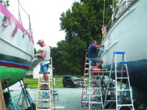 A few years ago, while sitting on the gravel applying fairing compound to my keels (see “Fairing the Keels,” July 2016), I heard a scratching sound, a yelp of profanity, a clatter and a thud. A boater in the next row had been caulking the toe rail from a ladder, he overreached, and the ladder squirted out. Several of us ran over to find the man in obvious pain. Dismissing our suggestions to seek medical assistance, he insisted on getting back to work. After all, he was launching in few days, the reason he had been rushing in the first place. But when he attempted to put the ladder back up, he found he couldn’t. He puttered about for a few minutes, by which time the adrenaline had worn off and the extent of his injuries became more clear. He announced he was headed to the clinic but would accept no help. The boat stayed on stands the rest of the season, after which it went on the market. The injuries to his back and shoulder were enough to end his sailing days.