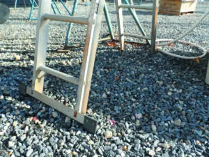 Keep the area clear. Don’t stack materials near or under ladders or scaffolding. You don’t want to trip coming or going, and though falling onto level gravel from a height is bad, falling onto a pile of stuff is much worse.