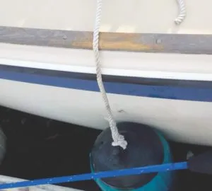5. DON’T: Hung without chafe protection, this fender wore a groove in the boat’s teak toerail.