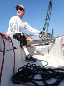 Covering up will always be the gold standard. On the boat, hard tops and Biminis are wonderful. Wide brims, full coverage sunglasses, and long sleeve wicking shirts will reduce sunscreen use. Use sunscreen on exposed areas of the neck, lips (sticks are good for touching up), nose and lower face, ears, and tops of feet if you like sandals. Apply 20 minutes before going out; it needs time to soak in, it’s easy to get caught up in sailing and forget, and it’s hard to apply on sweaty skin anyway. We avoid sunscreen above the eyes if there is spray or sweat; sunscreen in the eye stings and can be unsafe if you cannot see clearly at the wrong moment. But you need a good brim and wrap-around glasses.