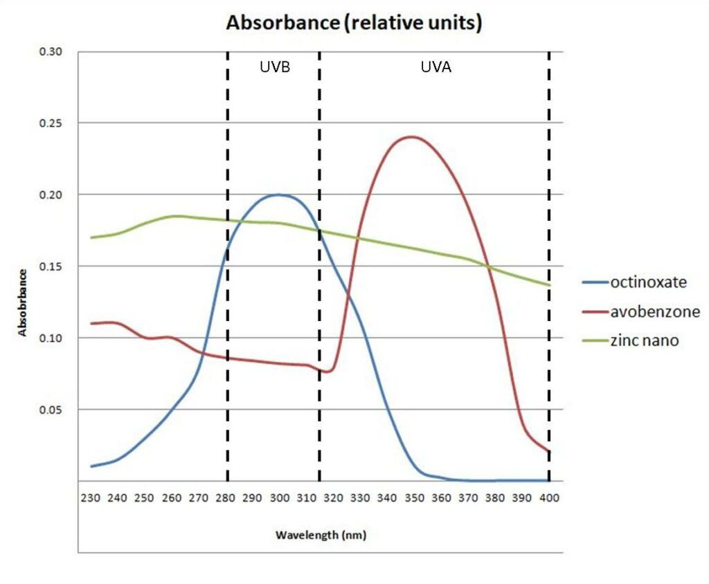 Ingredients. Because of concerns about reef bleaching, all of the leading brands of sunscreen we investigated (see link to product chart here) have reformulated around the most troubling ingredients. Avobenzone is perhaps the most common ingredient, and for good reason. It is one of few ingredients that provide broad spectrum protection—UVA (315–400 nm), UVB (280–315 nm). However, it is not a concern for reefs until 3-4 parts per million (ppm), which is much higher than ingredients of concern and many times higher than what has been measured at even at the most crowded, poorly flushed shoulder-to-shoulder tourist beaches. Its primary weakness is that it is not photostable and degrades in the sunlight, losing as much as 36% of its UV-absorption capacity after just one hour of sunlight. This can be reduced through the use of stabilizing agents. Yes, this is one of the reasons why sunscreens must be reapplied every few hours, but sunscreen is also sweated off and rubbed off by collars and hair and everything we touch.