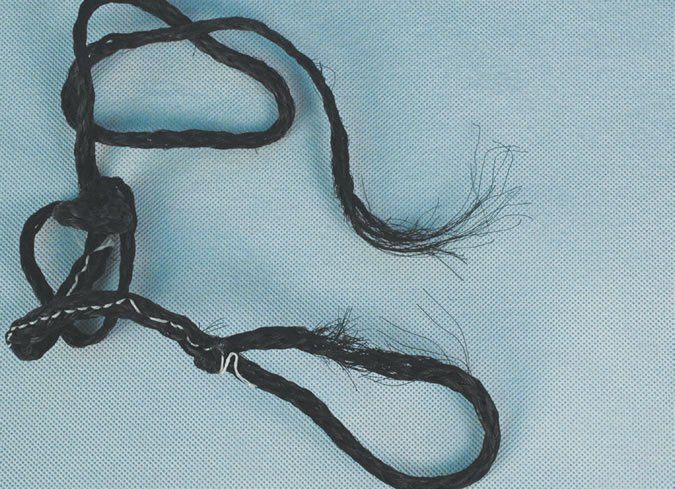 Abrasion. With machine stitching, any appreciable general abrasion, wear around carabiners, or broken stitches at the ends of the splice are cause for retirement. Scratched carabiners, on the other hand, are usually fine, although any cracks or other signs of crevice corrosion in the hardware is cause for concern.