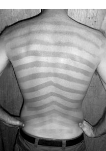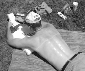 The test was simple: We taped the back of our volunteer (a fair-skinned editor who tends to burn, not tan) with masking tape and applied the sunscreens between the stripes, using liberal amounts of each product and rubbing it in carefully and evenly. After it was “set” we peeled off the tape, waited 30 minutes, and sent the fellow outside to lie on his stomach for two hours in the noonday sun, like a mad dog or Englishman. Then we rinsed him off and checked for redness, and to see and feel how much lotion remained on the skin.