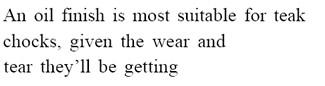 Drill for fastenings and finish the wood. An oil finish is most suitable for teak chocks, given the wear and tear they’ll be getting.